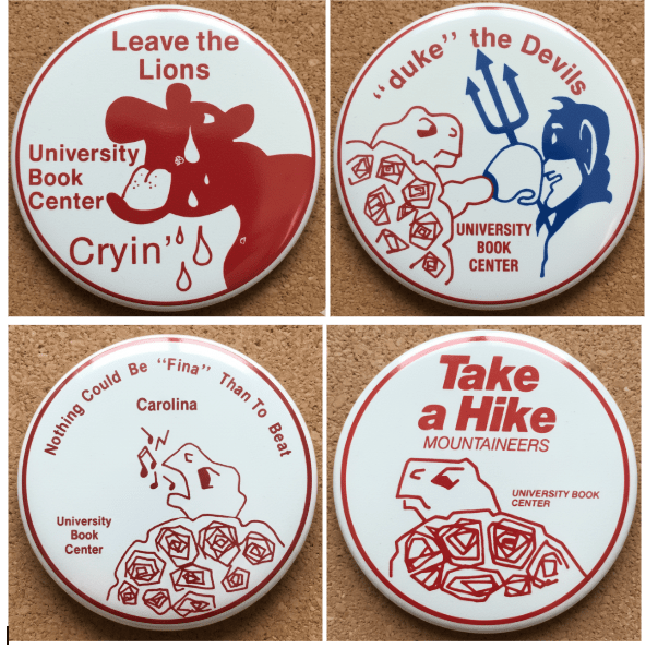 In 1988, the University Book Center again made buttons for all home games, but the slogans are unknown.