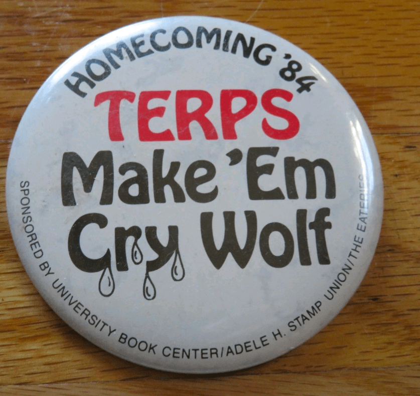 From at least 1983 to 1994 various University of Maryland institutions gave out “Spirit Buttons,” and there are indications that buttons were made in 1982 and 1995. Basketball buttons were also made for all ACC home opponents during this window, which complicates identifying football buttons.