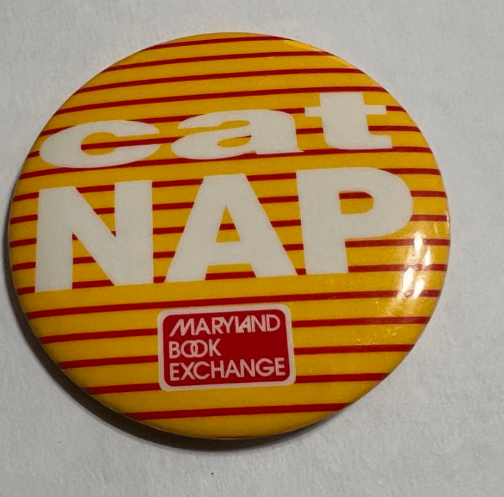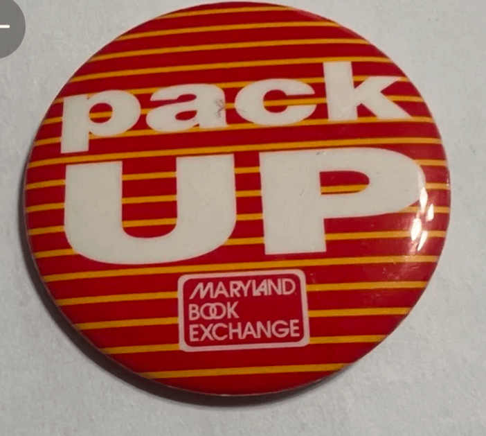 By 1991 the buttons had a major makeover. They featured the turtle mascot, a slogan, and the bottom third of the button was red or yellow with the Maryland Book Exchange logo. The first letter is capitalized and either red or yellow. It’s possible this change happened much earlier because I don’t have a confirmed button photo from 1988 to 1991.