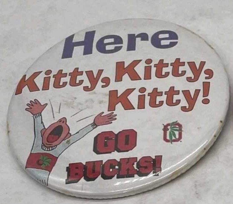 Ohio State makes BEAT TEAM buttons fairly regularly, but I typically don’t consider those to be “slogan” buttons even though they include the game date because they are fairly generic.