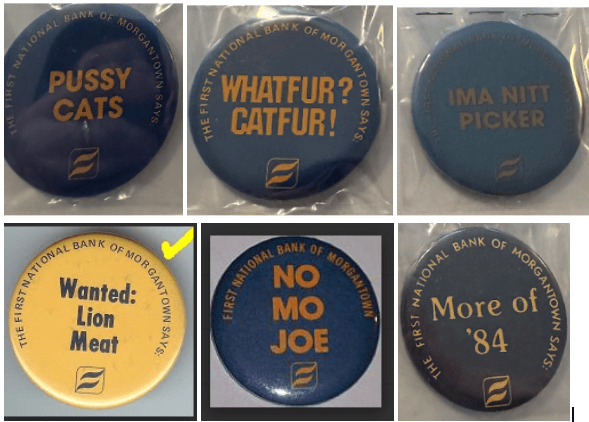 I have no information on these buttons or how to categorize them because I have only ever identified these buttons. Penn State and West Virginia played every year from 1947 to 1992 and from 1972 to 1992 the games alternated location, with even years in Morgantown and odd years in State College.